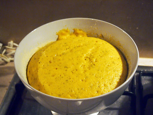 1. Drożdże mieszamy z 1/3 szklanki ciepłej wody.