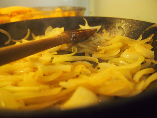 1. Cebulę obieramy i kroimy w cienkie pióra.