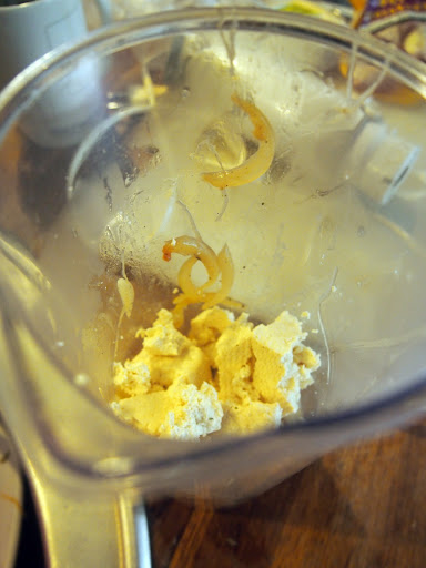 3. Połowę uduszonej cebuli blenderujemy z tofu. Przyprawiamy solą, solą czosnkową i pieprzem. Drugą polowę duszonej cebuli dzielimy na 2 porcje. Pierwszą mieszamy z masą, drugą zostawiamy do ułożenia już bezpośrednio na paście rozsmarowanej na pieczywie.