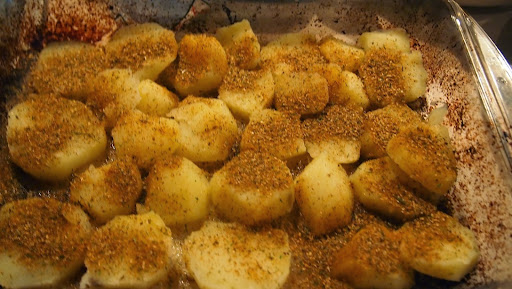 - Przyprawy: 1 paczka przyprawy do ziemniaków (konieczna!), 2 łyżeczki soku z cytryny, 1 łyżeczka pieprzu, 1 łyżeczka soli