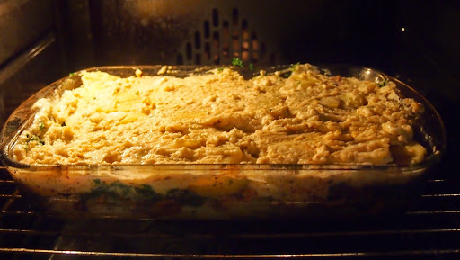 Teraz kolejna warstwa ziemniaków. Znów posypujemy je przyprawą.Całość zakrywamy sosem beszamelowym. Wstawiamy do rozgrzanego na 180 stopni piekarnika i pieczemy około 30-40 minut (aż sos będzie złotą skorupką).