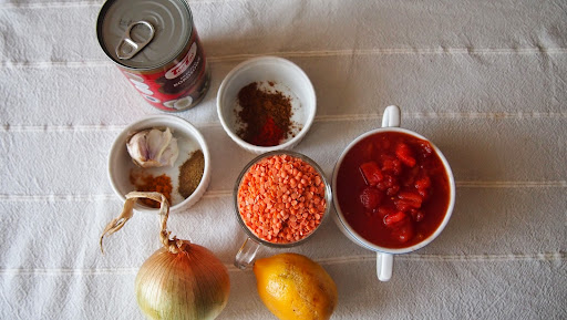 1 szklanka czerwonej (nieugotowanej soczewicy)