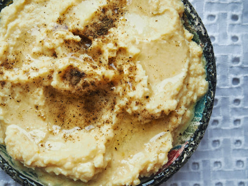 Pastę przygotujecie bardzo szybko, ponieważ nie musicie moczyć grochu przez całą noc, czy długo go gotować. Wybierzcie łuskany groch, połówki, gotujcie go przez 40-50 minut, dodajcie cebulkę, przyprawy, oliwę i cieszcie się kremową pastą.